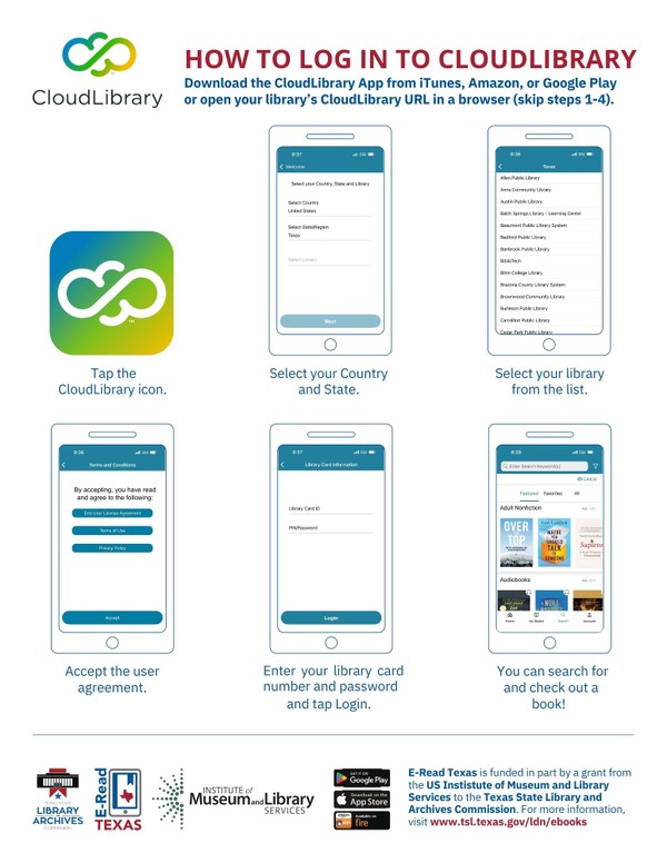 Great News Digital Readers! The Texas State Library has announced a new platform for E-Read Texas! The app for e-books and e-audios is CloudLibrary.
